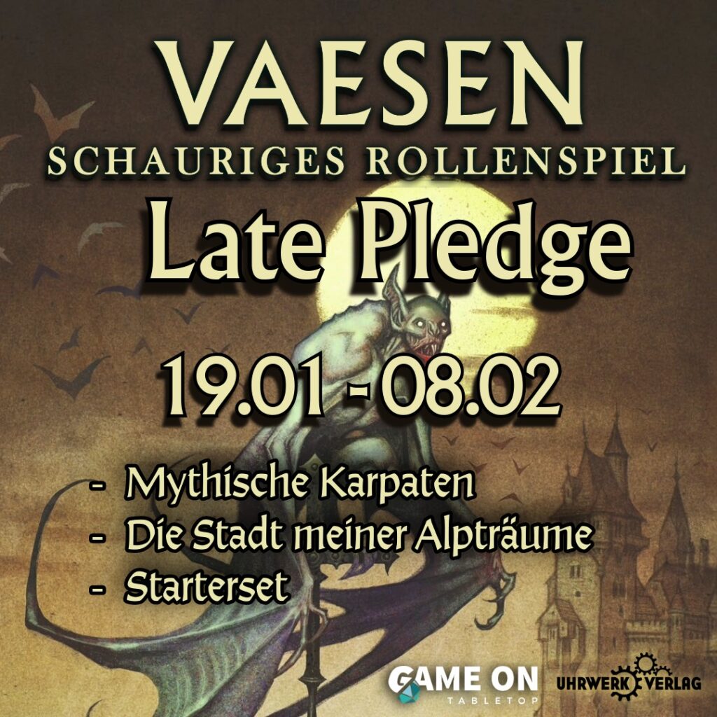 Danach folgt das eigentliche Crowdfunding. Den genauen Startzeitpunkt machen wir von der Fertigstellung des Myranor-Crowdfundings abhängig, wir wollen zumindest den Großteil der CF-Produkte vorher draußen haben. Aktuell rechne ich mit Q2 2026.